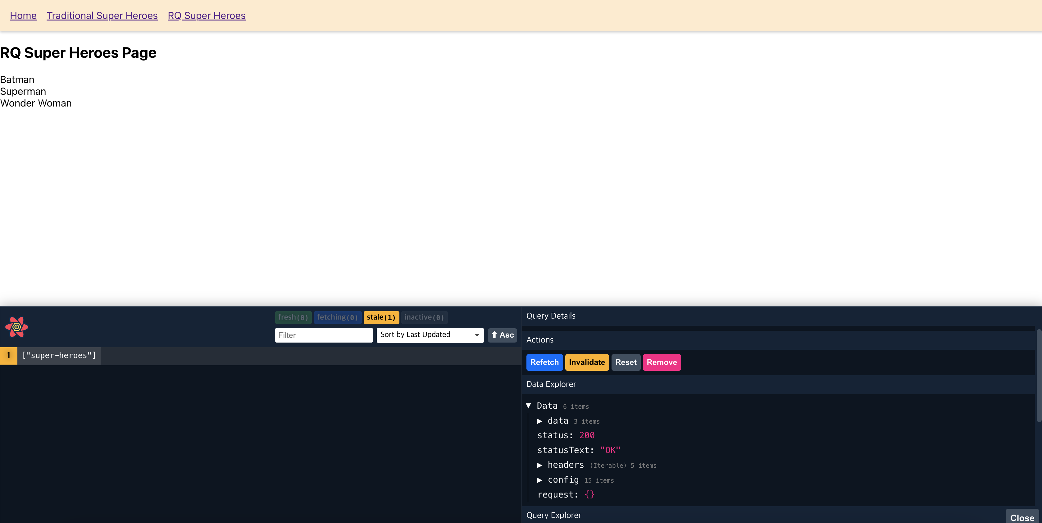 const {isLoading, data, isError, error } = useQuery('super-heroes', fetchSuperHeroes,