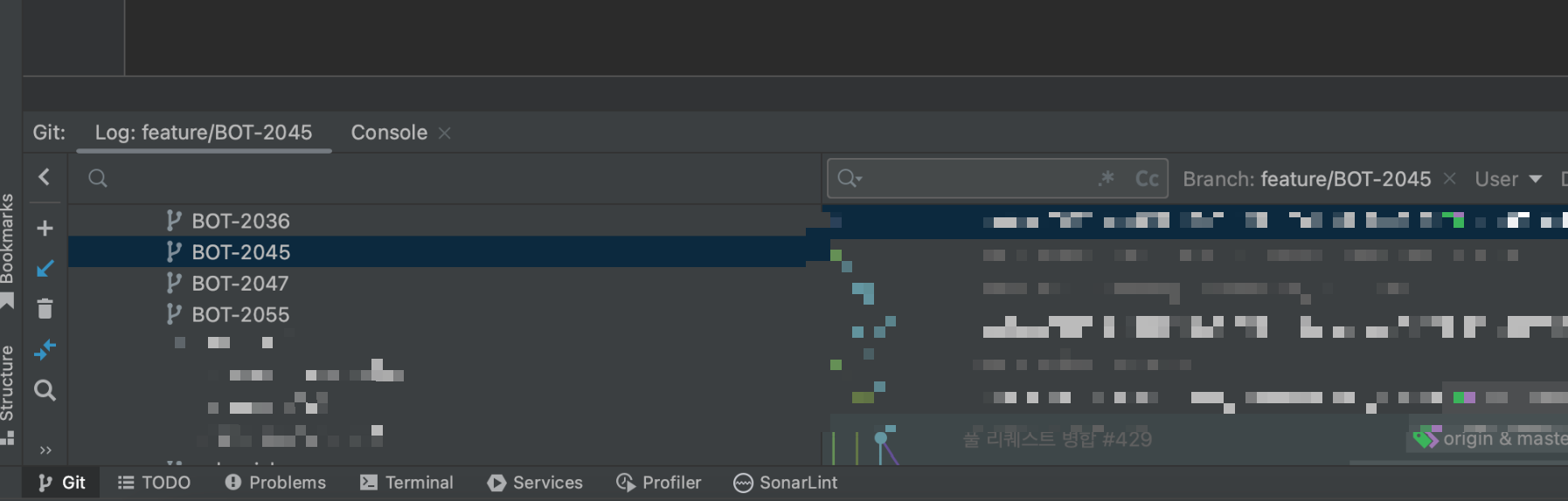 ์๋์ ์ฌ์ง์ ์ฐธ๊ณ ํด๋ณด๋ฉด ๋ฐ์ git ๋ฉ๋ด๊ฐ ๋ณด์ธ๋ค. ๊ฑฐ๊ธฐ์ ํด๋น ๋ธ๋์น ํด๋ฆญ, ์ค๋ฅธ์ชฝ์ ํด๋น ์ปค๋ฐ ํด๋ฆญ~