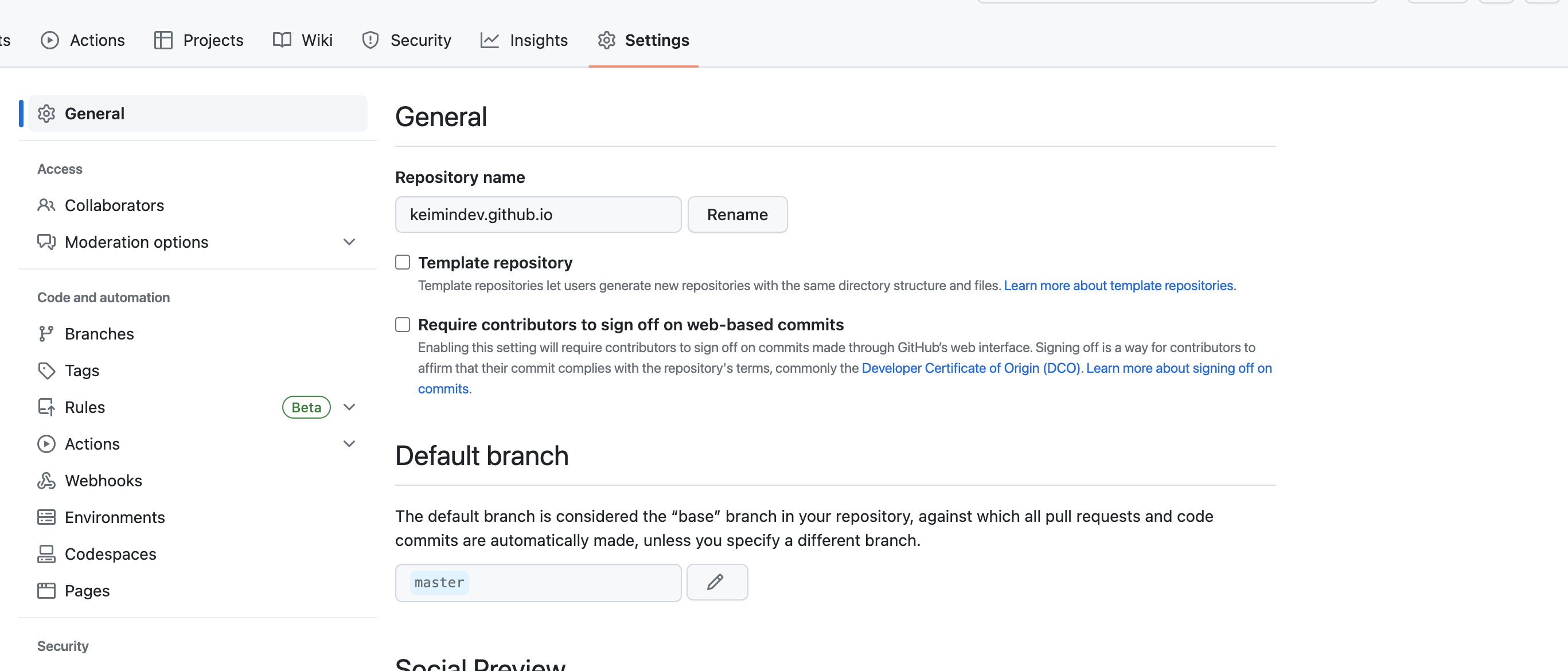 ์๋์ฒ๋ผ setting์ ๋ค์ด๊ฐ์ repository name์ ๋ฐ๊ฟ์ฃผ์๋ฉด ๋ฉ๋๋ค. ์ ์ฒ๋ผ github.io๋ฅผ ๋ถ์ฌ์ ์งํํด์ฃผ์๋ฉด ๋์ค์ ๊นํ๋ธ ํ์ด์ง ์ฃผ์ ์๋์ ๊ฐ์ต๋๋ค. ํ์ง๋ง ๋ค๋ฅธ ์ด๋ฆ์ผ๋ก ์งํํด์ฃผ์๋ฉด {๋ณธ์ธ๊นํ์ด๋ฆ}.github.io/{respository_name} ์ผ๋ก ์ฃผ์๊ฐ ์ ํด์ง๋ ๊ฑธ๋ก ์์์. ๋ฌผ๋ก custom ํ ์ ์์ต๋๋ค.