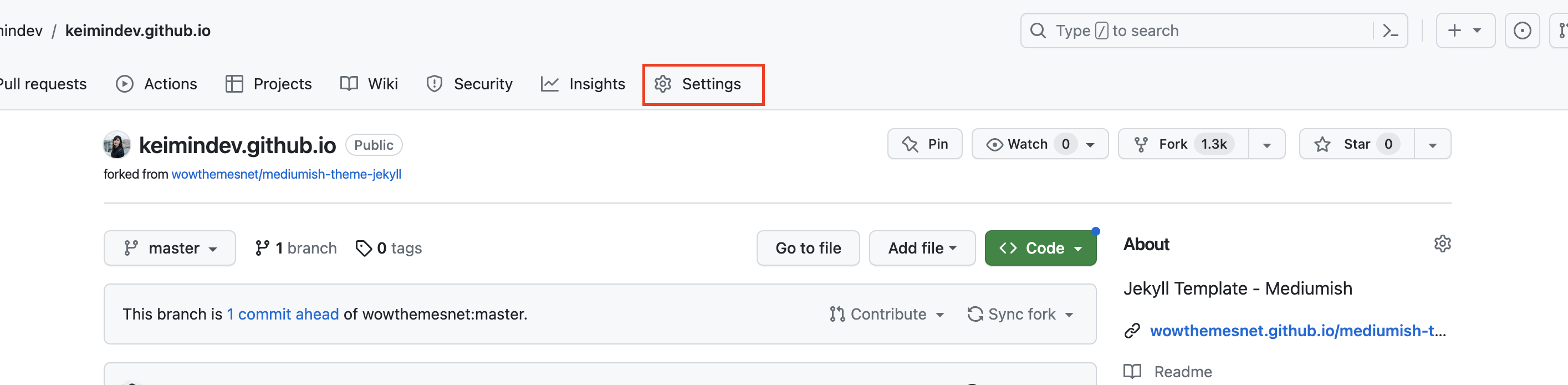 1. ๋ด ์ ์ฅ์๋ก ํ ํ๋ฆฟ forkํ๊ธฐ