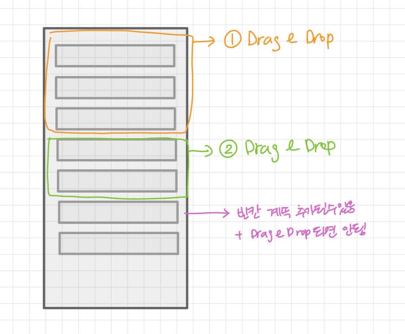 - ํ๋์ ๋ฆฌ์คํธ ์์ ์์ด๋ฉด ์๋๋ drag&drop ๊ทธ๋ฃน์ด 2๊ฐ ์๊ณ ,