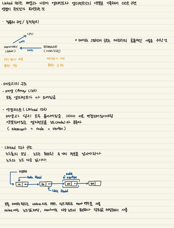 ์๊ฐ Linked List๋ Array List์๋ ๋ค๋ฅด๊ฒ ์๋ฆฌ๋จผํธ์ ์๋ฆฌ๋จผํธ ๊ฐ์ ์ฐ๊ฒฐ(link)์ ์ด์ฉํด์ ๋ฆฌ์คํธ๋ฅผ ๊ตฌํํ ๊ฒ์ ์๋ฏธํฉ๋๋ค. ๊ทธ๋์ ์ด๋ฆ๋ linked list์ ๋๋ค. ๊ทธ๋ ๊ฒ ๋ณด๋ฉด linked list์์ ๊ฐ์ฅ ์ค์ํ