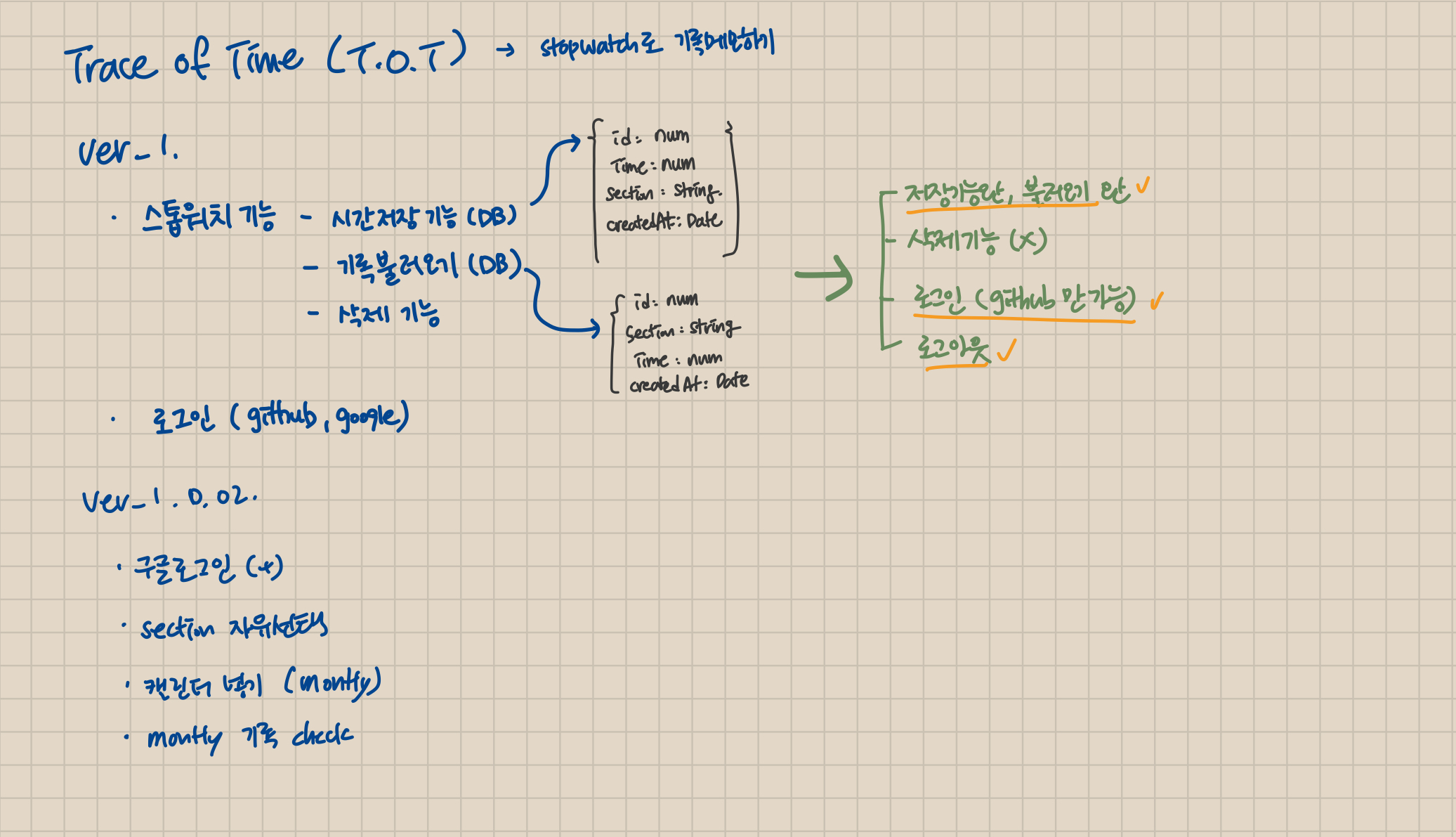 T.O.T (Trace of Time)๋ ํ์ฌ ๋ด๊ฐ ๋น์ฅ ์ฐ๊ณ ์ถ์ด์ ์ฒ์์ ๊ธฐํํ๋๊ฑฐํด์ ํ - ๋ด์ฉ์ ์ค์ฌ์ ๋น์ฅ ํ์ํ ๊ธฐ๋ฅ๋ง ๋ถ์ฌ๋๊ณ ์ถํ์ ์ฒ์ฒํ ์ ๋ฐ์ดํธํด์ผ๊ฒ ๋ค๋ผ๊ณ ์๊ฐํ๋ค.