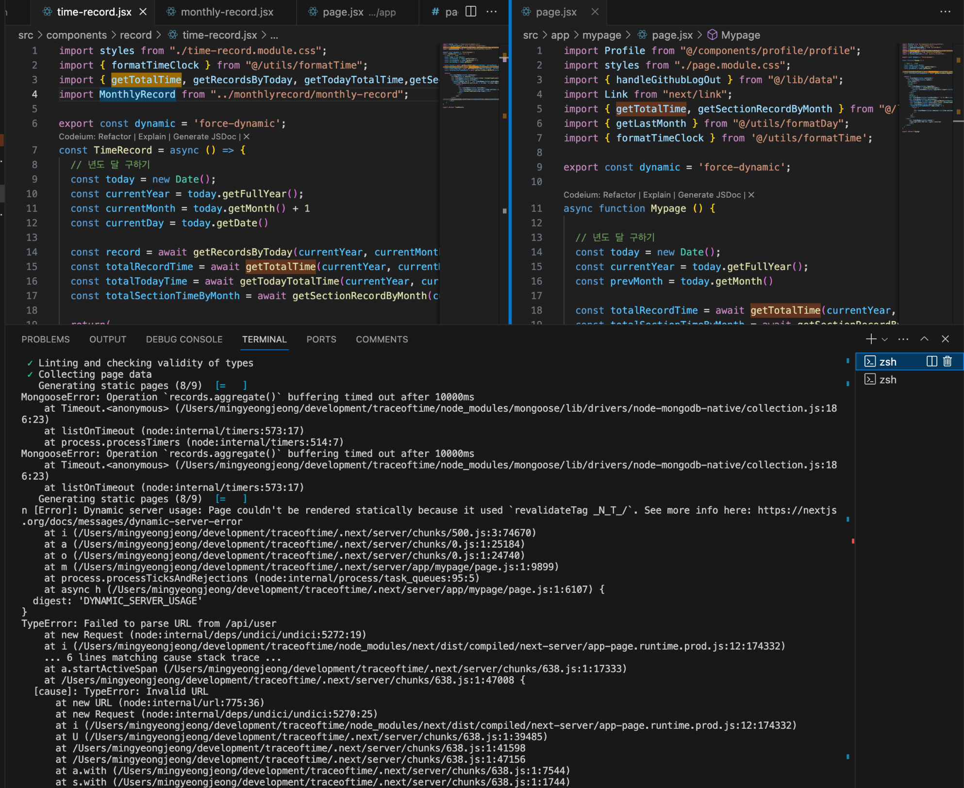 ํ๋ก์ ํธ ๊ตฌํ์ ์งํํ๋ฉด์ ์๋ก์ด ํ์ด์ง๋ฅผ ๋ง๋ค์๋ค. ์๋ฒ์ ์ ์ฅ๋์ด์๋ ๋ฐ์ดํฐ๋ฅผ ๊ฐ์ ธ์ค๊ธฐ ์ํด์ ์ด๋ฏธ ๋ง๋ค์ด์ ธ์๋ ๋ฐ์ดํฐ ํธ์ถ ์ฝ๋๋ค์ ๊ทธ๋๋ก ์ฌํ์ฉํด์ ์งํ์ ํ๋๋ฐ ๊ฐ๋ฐ๋ชจ๋์์๋ ๊ด์ฐฎ์์ง๋ง ๋น๋๋ง ํ๋ฉด ๊ณ์ํด์ ์ค๋ฅ๊ฐ ๋ฌ๋ค.