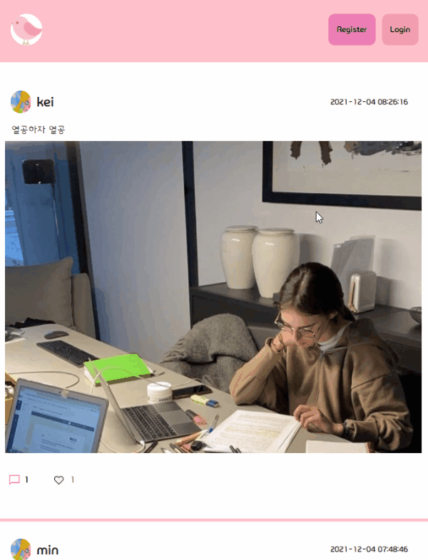 ์ด๋ฒ ์ฃผ ๊ณผ์ ๋ ์์์ผ์ด๋ฉด ๋ค ์์ฑํ๊ฒ ์ง? ๋ผ๊ณ ์๊ฐํ์๋๋ฐ, ๋ง์ง๋ง ๋ง๊ฐ๊น์ง๋ ์ข์์ ๋ฒํผ ๊ธฐ๋ฅ ๋ฒ๊ทธ๋ฅผ ์ก์๋ด์ง ๋ชปํด์ ๋ฐ๋๋ผ์ธ์ง์ ๊น์ง๋ ์ฝ๋๋ฅด๋ฅด ๋ง์ง๊ณ ์์๋ค. mitter ๋ผ๊ณ ์ด๋ฆ์ ์ง์ด ์ค ์ด๋ฒ ๋์ ํ๋ก์ ํธ! ์ธ์คํ๊ทธ๋จ๊ฐ์ ์ด๋ฏธ์ง ๊ณต์ ๊ธฐ๋ฐ sns ์คํ์ผ์ธ๋ฐ ์ด๋ฆ์ ํธ์ํฐ์์ ๊ฐ์ ธ์๋ค ใ